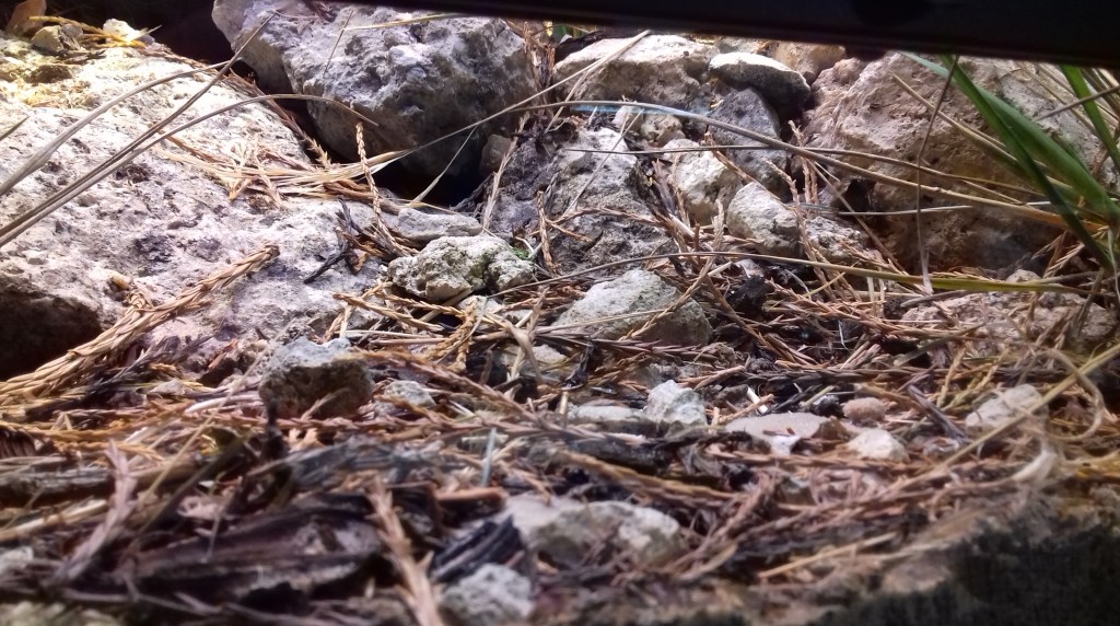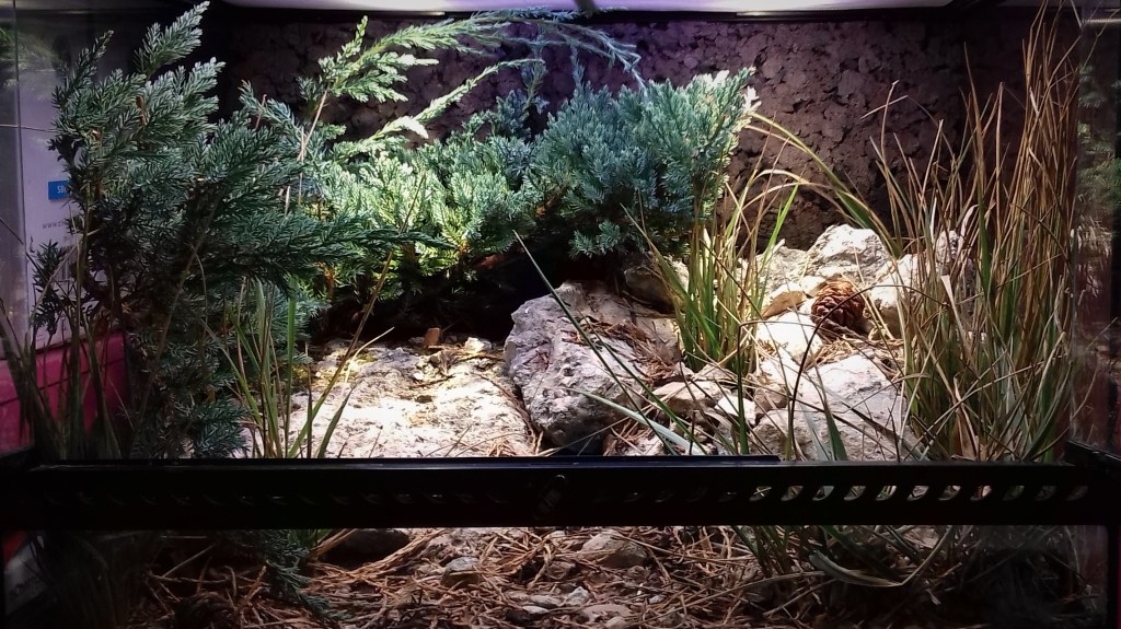 Premier essai de terrarium représentant un biotope « Méditerranéen ». Au vu de sa petite taille, il pourrait être adapté à différents arthropodes (scorpions, myriapodes, cloportes, insectes,…) ou de petits reptiles (tarente, petits lacertidés ou vipères juvéniles).